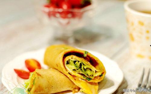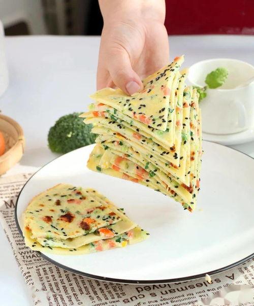 1. 蔬菜煎饼:将胡萝卜、黄瓜、生菜等蔬菜切成细丝,加入煎饼中,搭配番茄酱或沙拉酱食用。